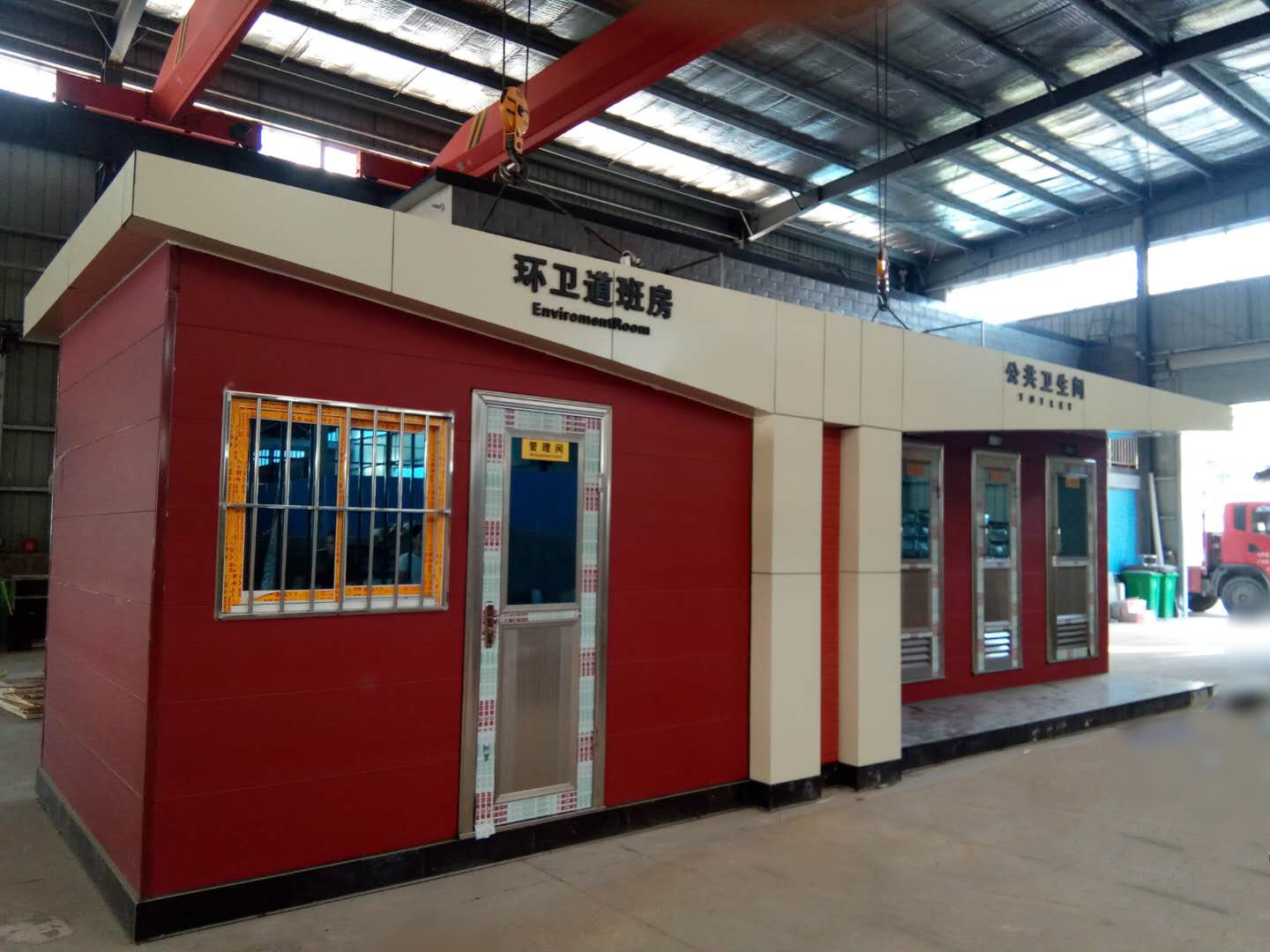 1、房體結(jié)構(gòu): 采用輕鋼龍骨結(jié)構(gòu),鋼材全部使用國(guó)家標(biāo)準(zhǔn)鍍鋅鋼材。根據(jù)房體的大小特選用國(guó)標(biāo)方管(50-100)焊接而成。鍍鋅管厚度為2.8mm,方管經(jīng)過(guò)除銹后進(jìn)行鍍鋅、防腐處理。這樣就會(huì)延長(zhǎng)廁所使用壽命。