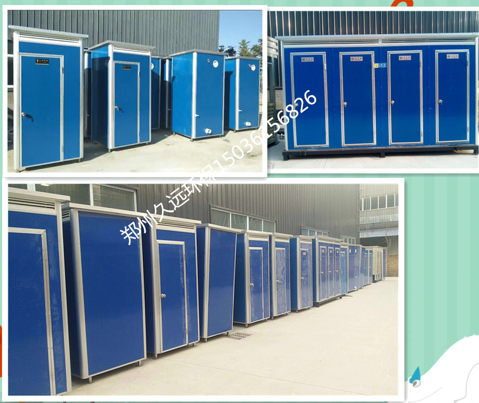 鄭州久遠(yuǎn)環(huán)衛(wèi)移動(dòng)公廁廠(chǎng)家直銷(xiāo),可根據(jù)客戶(hù)需求定制各種顏色、尺寸、款式、造型、多蹲位等移動(dòng)衛(wèi)生間。